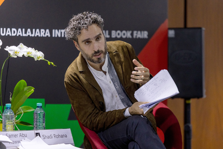 El domingo 7 de diciembre por la tarde, el Salón de la Poesía de la Feria Internacional del Libro de Guadalajara recibió al poeta palestino Samer Abu Hawwash en una sesión presentada y moderada por el crítico y académico de origen palestino Shadi Rohana. Abu Hawwash recitó en árabe una selección de poemas de su libro más reciente, Desde el río hasta el mar, que Rohana leyó en la versión castellana realizada por María Luisa Prieto y publicada en número 15 (otoño–invierno de 2024) de la revista Banipal. Dicho poemario también ha sido traducido al inglés y publicado por Banipal Books en junio de 2025.